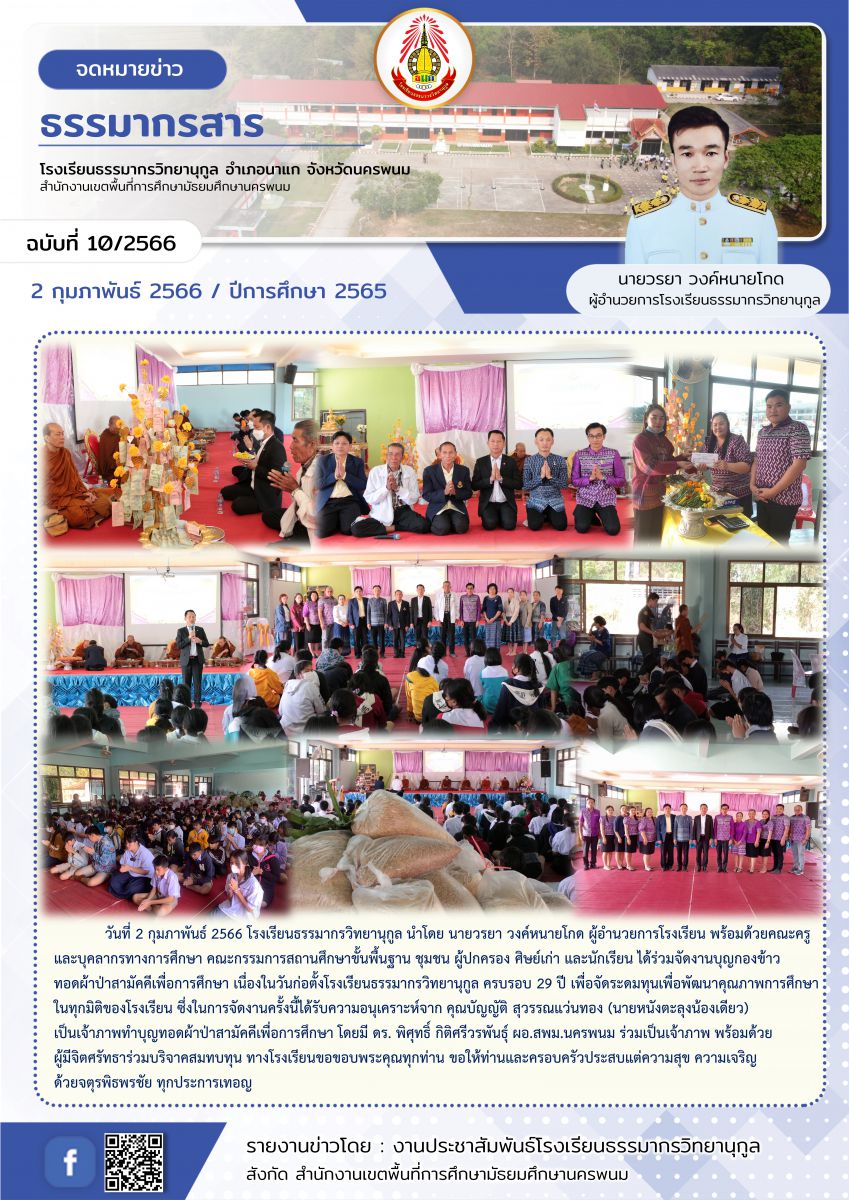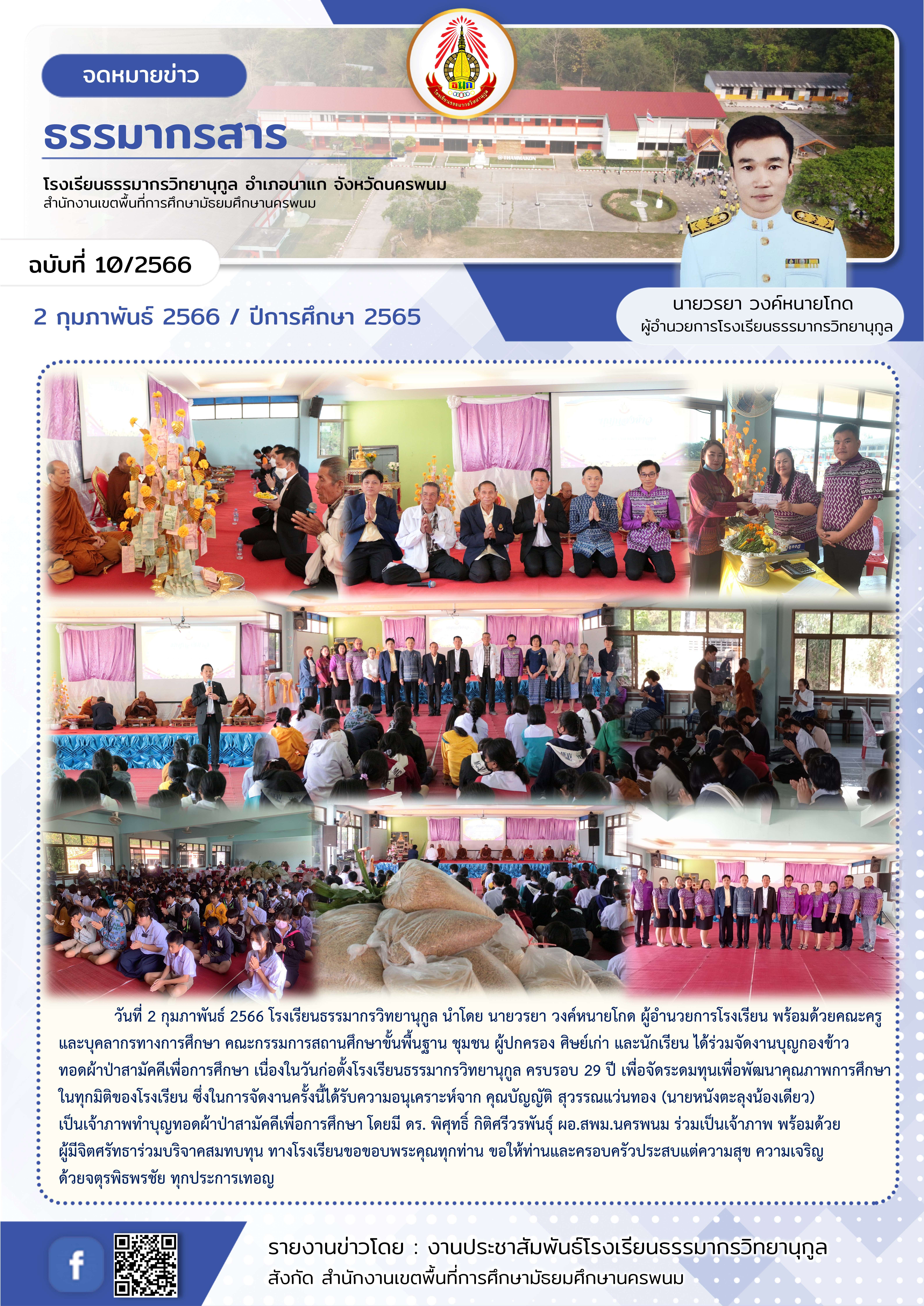 กิจกรรมงานบุญกองข้าวทอดผ้าป่าสามัคคีเพื่อการศึกษา เนื่องในวันก่อตั้งโรงเรียนธรรมากรวิทยานุกูล ครบรอบ 29 ปี