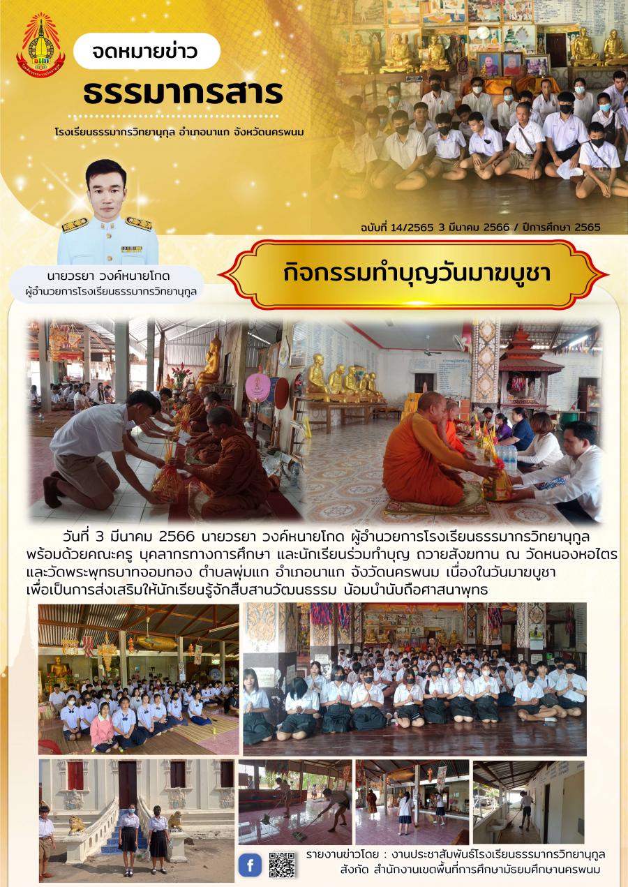 กิจกรรมทำบุญ ถวายสังฆทาน ณ วัดหนองหอไตร และวัดพระพุทธบาทจอมทอง ตำบลพุ่มแก อำเภอนาแก จังวัดนครพนม เนื่องในวันมาฆบูชา