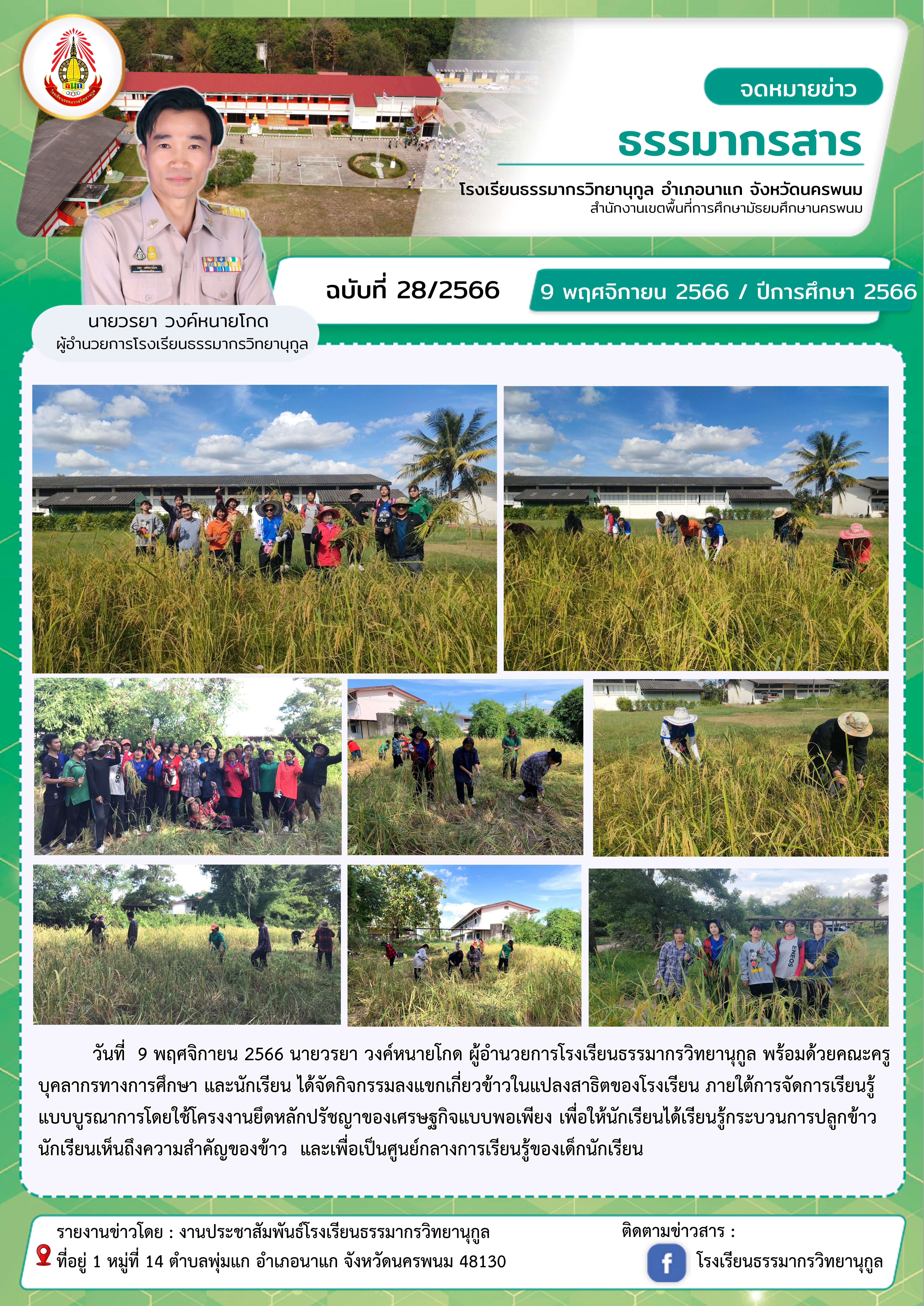 กิจกรรมลงแขกเกี่ยวข้าวในแปลงสาธิตของโรงเรียน
