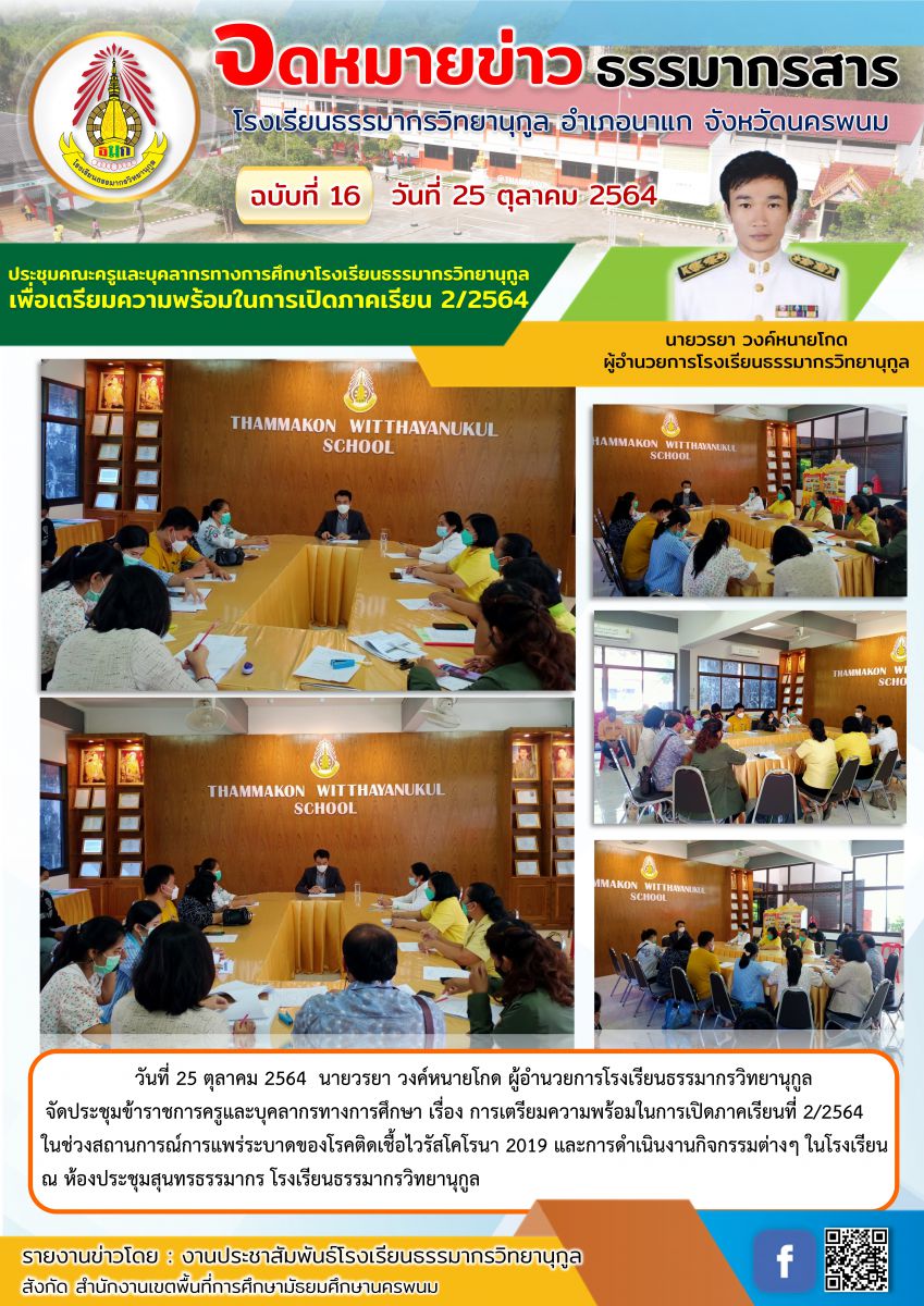 ประชุมคณะครูและบุคลากรทางการศึกษาโรงเรียนธรรมากรวิทยานุกูล เพื่อเตรียมความพร้อมในการเปิดภาคเรียน 2/2564