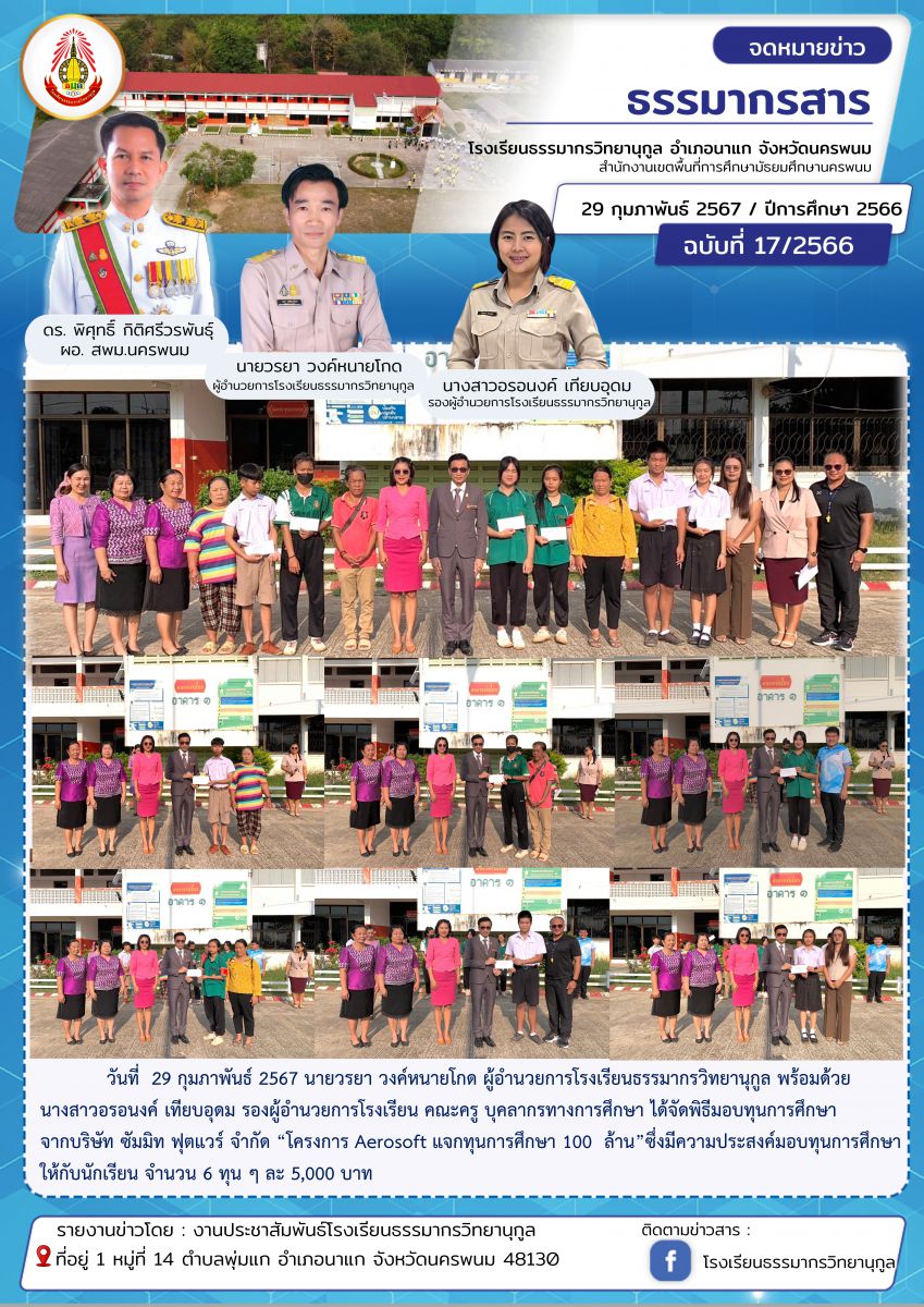พิธีมอบทุนการศึกษาจากบริษัท ซัมมิท ฟุตแวร์ จำกัด โครงการ Aerosoft แจกทุนการศึกษา 100 ล้าน