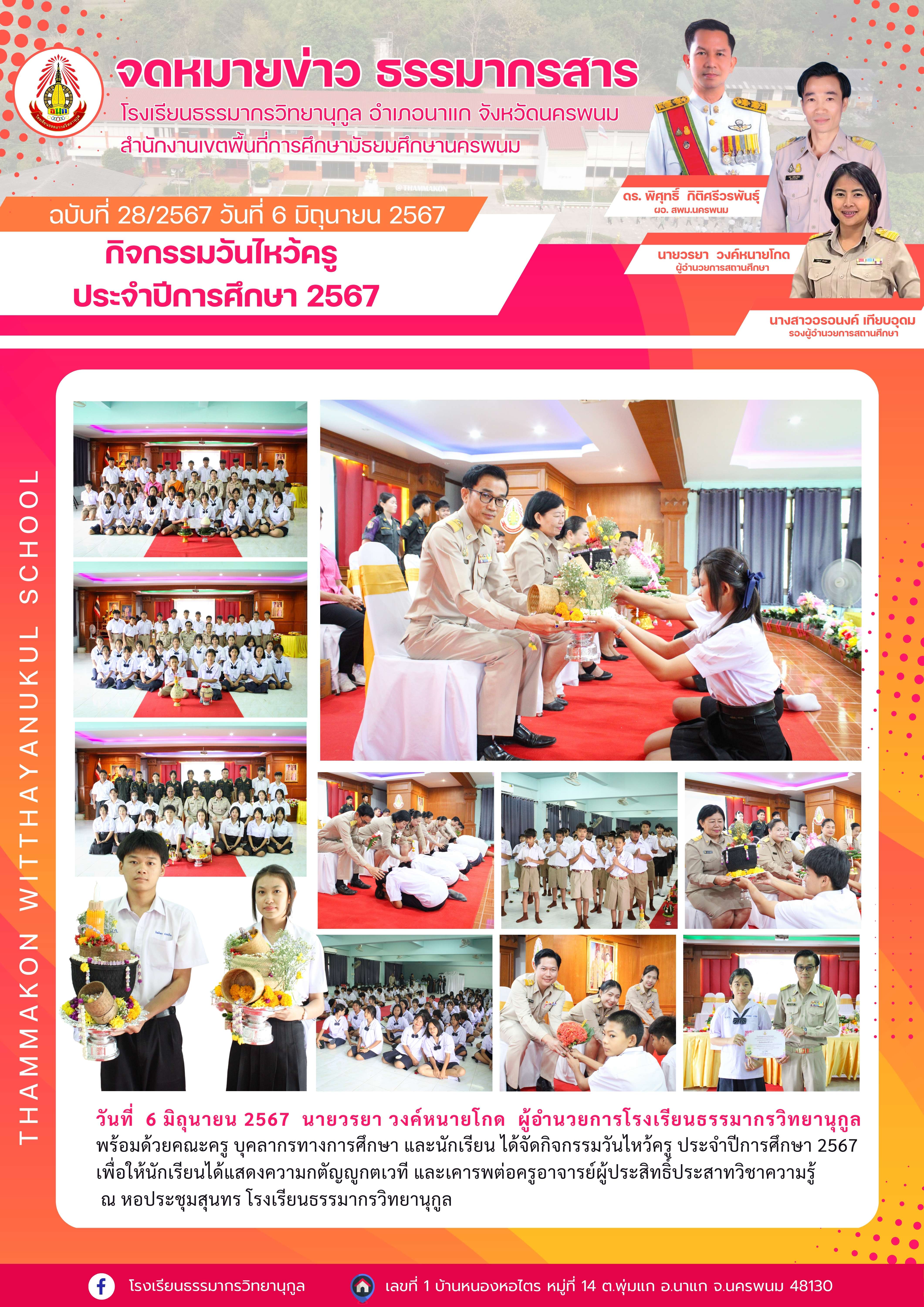 กิจกรรมวันไหว้ครู ประจำปีการศึกษา 2567