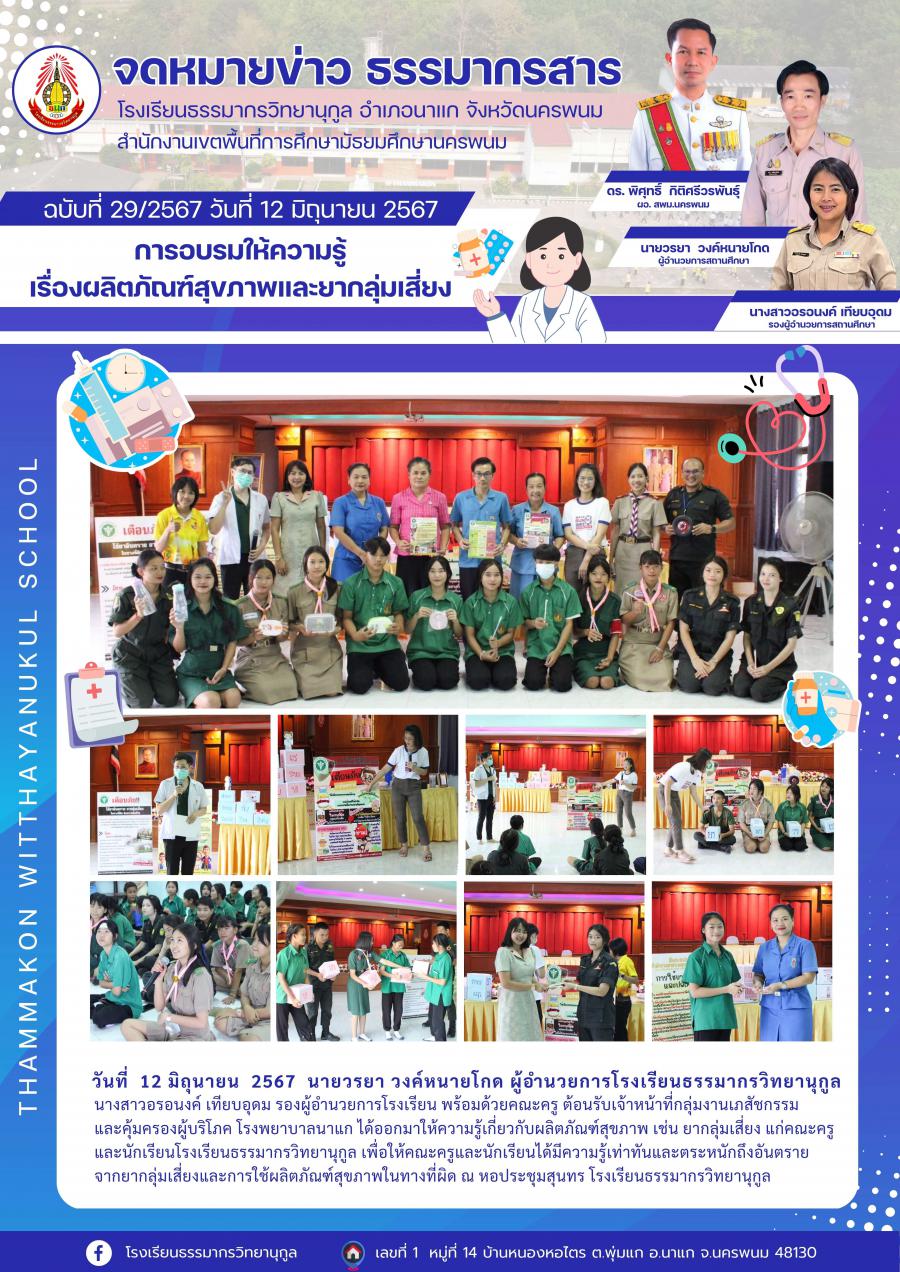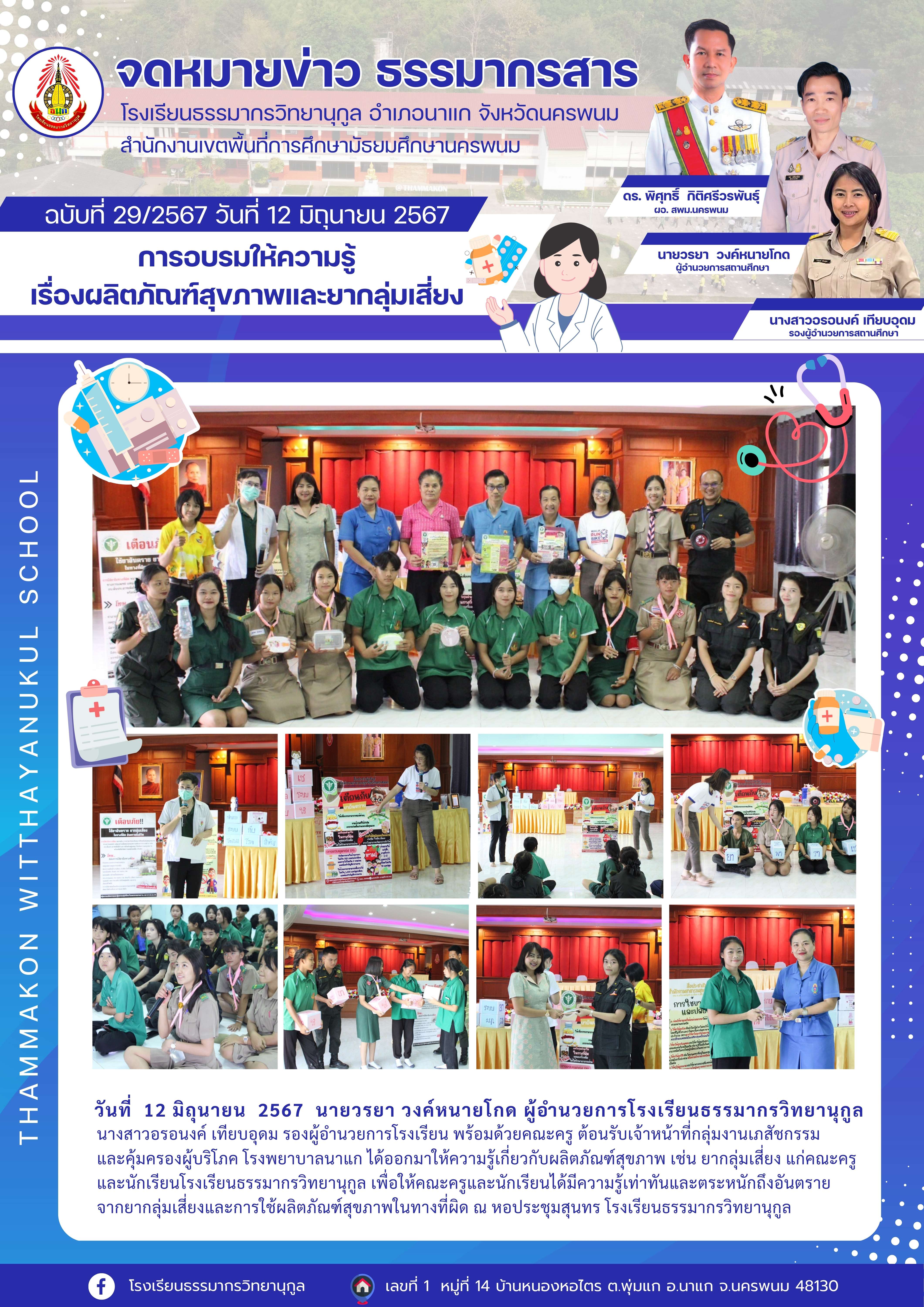 เจ้าหน้าที่กลุ่มงานเภสัชกรรม โรงพยาบาลนาแก มาให้ความรู้เกี่ยวกับผลิตภัณฑ์สุขภาพ