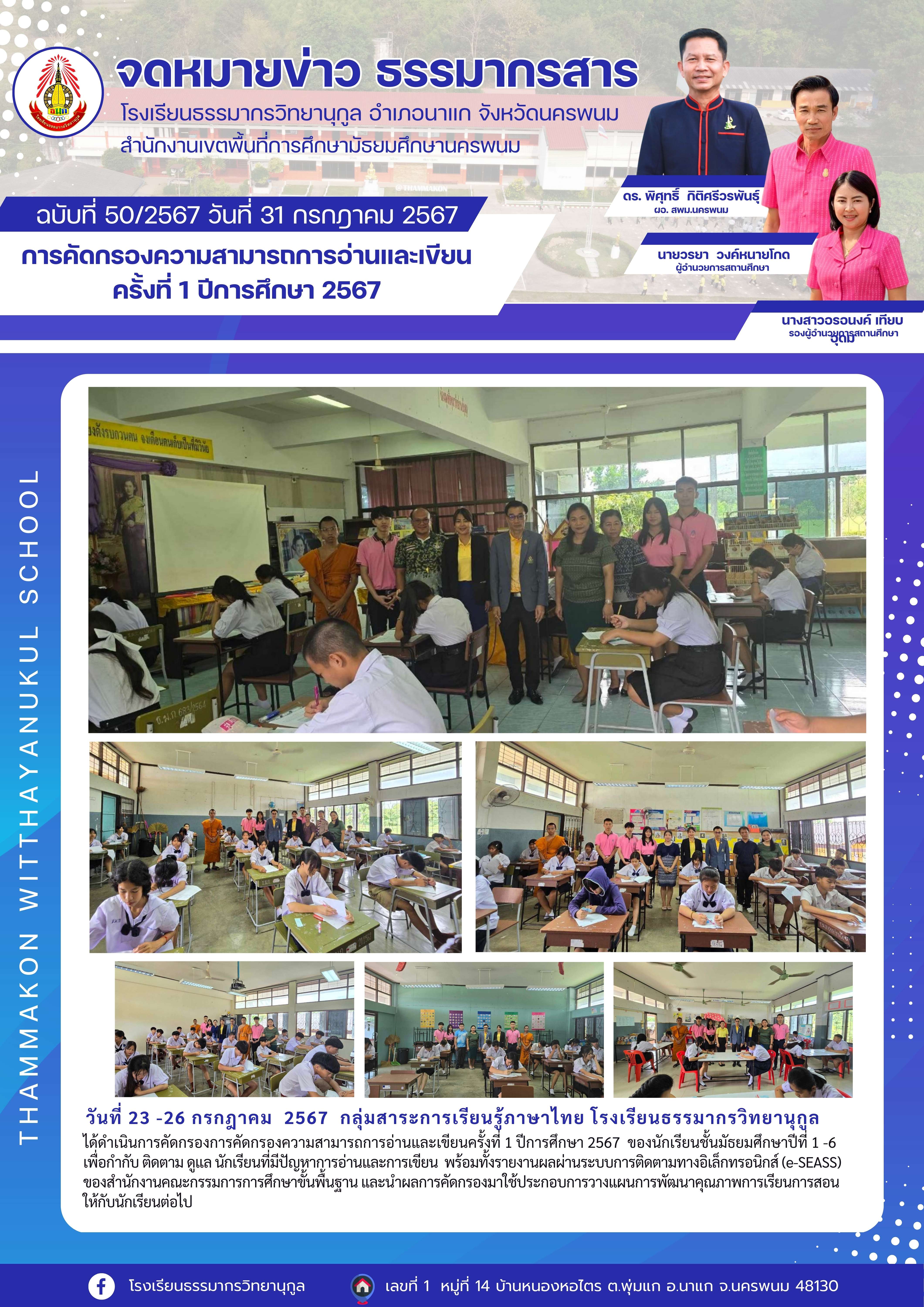 การคัดกรองความกรองสามารถการอ่านและเขียน ครั้งที่ 1 ปีการศึกษา 2567
