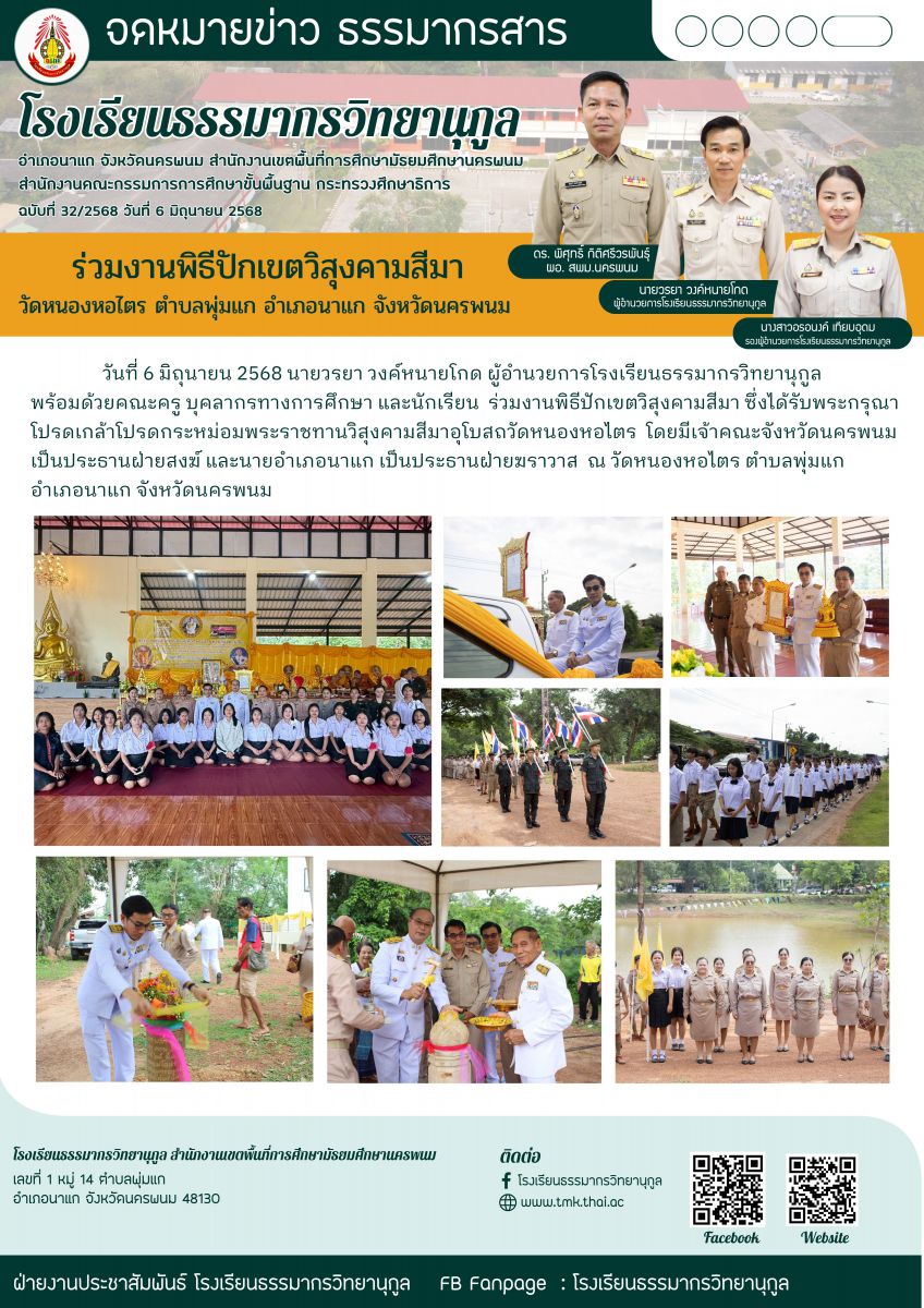 ร่วมงานพิธีปักเขตวิสุงคามสีมา วัดหนองหอไตร ตำบลพุ่มแก อำเภอนาแก จังหวัดนครพนม