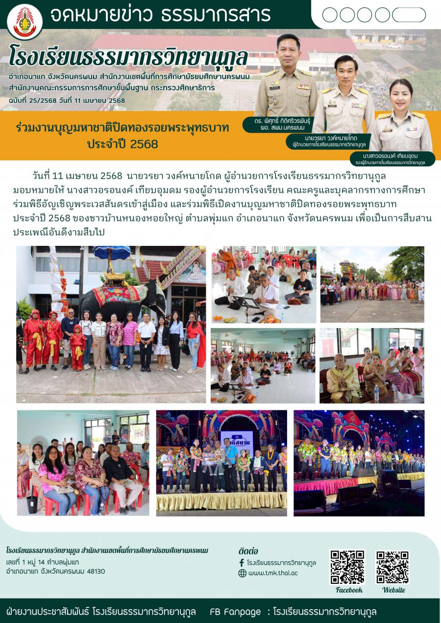 ร่วมงานบุญมหาชาติปิดทองรอยพระพุทธบาท ประจำปี 2568 วัดพระพุทธบาทจอมทอง บ้านหนองหอใหญ่ ตำบลพุ่มแก อำเภอนาแก จังหวัดนครพนม