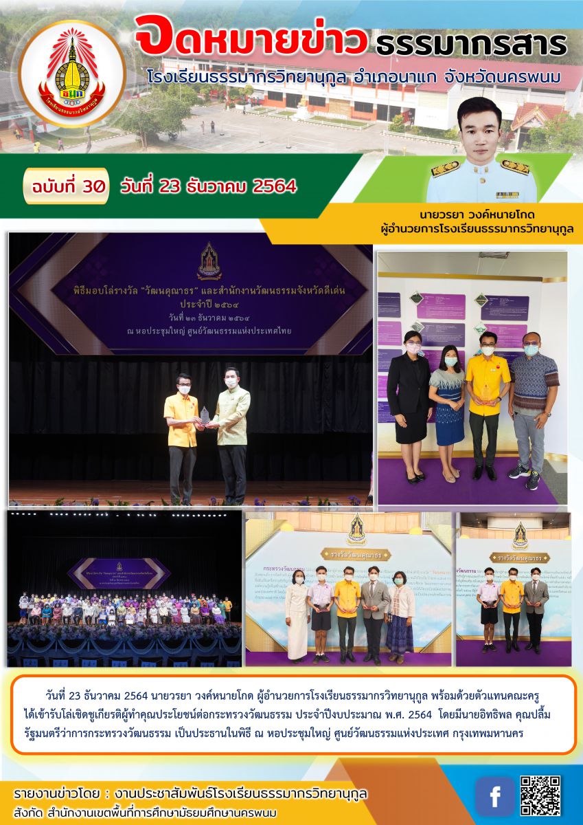 โรงเรียนธรรมากรวิทยานุกูล ได้รับโล่เชิดชูเกียรติผู้ทำคุณประโยชน์ต่อกระทรวงวัฒนธรรม ประจำปีงบประมาณ พ.ศ. 2564