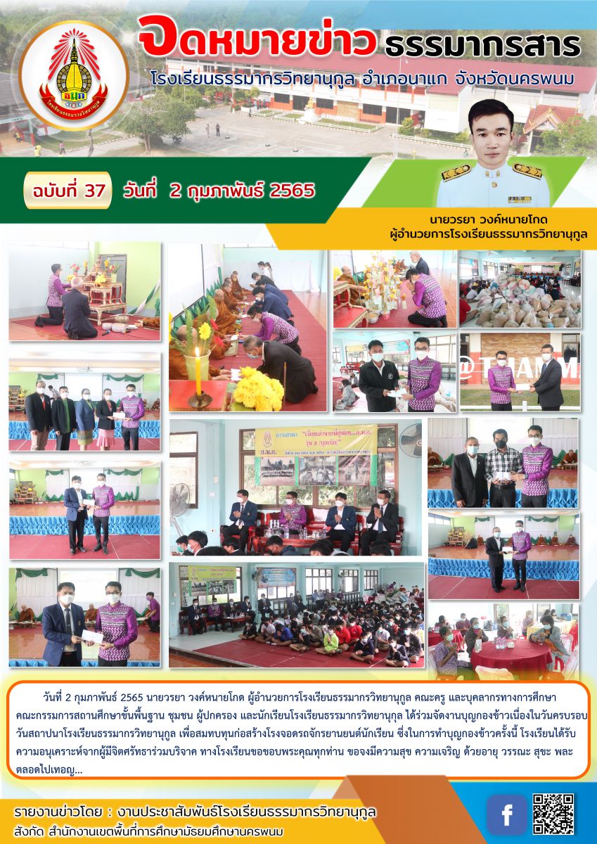 โรงเรียนธรรมากรวิทยานุกูล ได้ร่วมจัดงานบุญกองข้าวเนื่องในวันครบรอบ วันสถาปนาโรงเรียนธรรมากรวิทยานุกูล เพื่อสมทบทุนก่อสร้างโรงจอดรถจักรยานยนต์นักเรียน