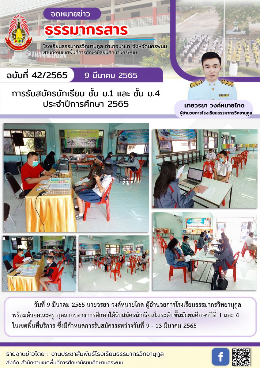 การรับสมัครนักเรียน ชั้น ม.1 และ ชั้น ม.4 ประจำปีการศึกษา 2565