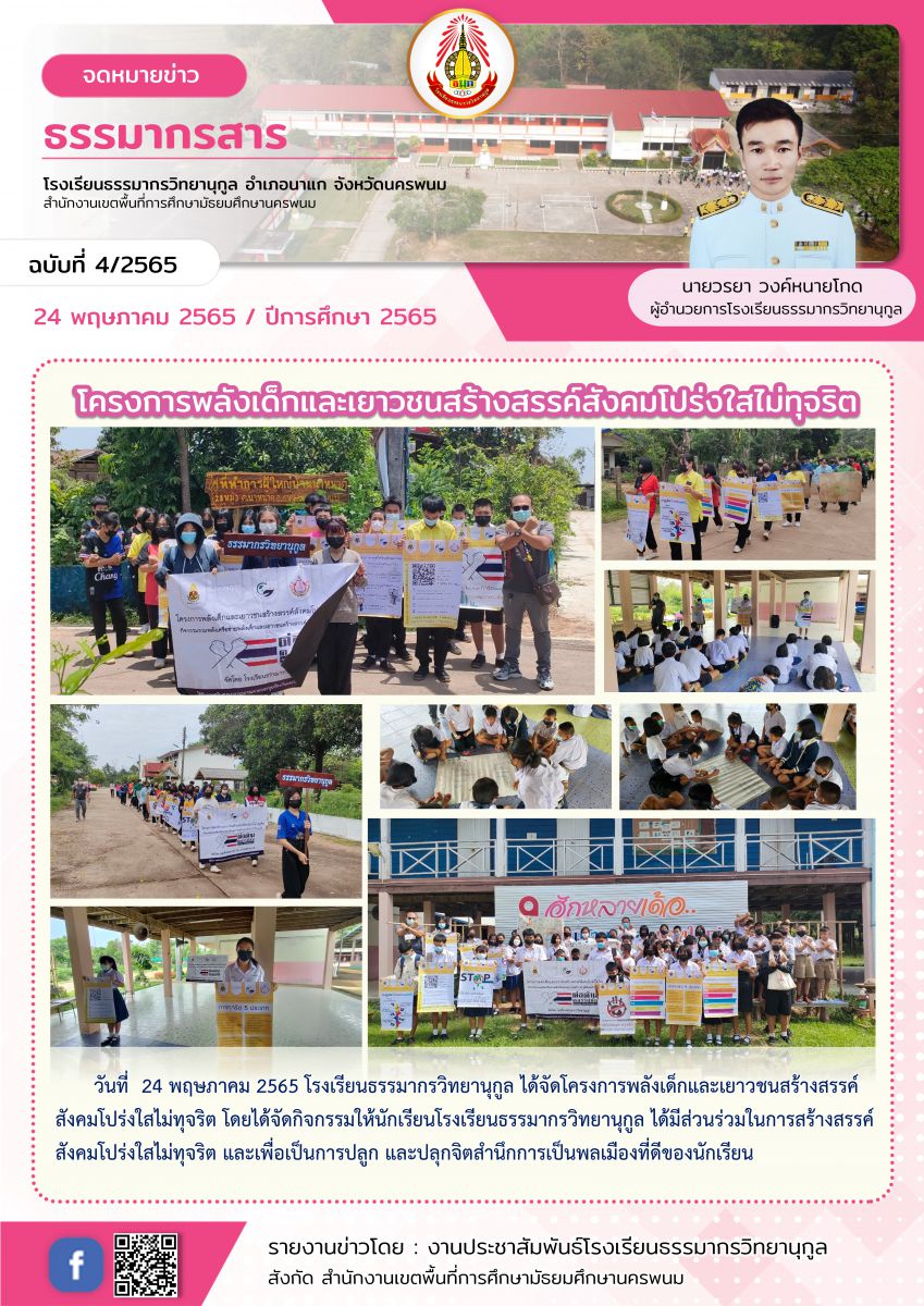 โครงการพลังเด็กและเยาวชนสร้างสรรค์สังคมโปร่งใสไม่ทุจริต