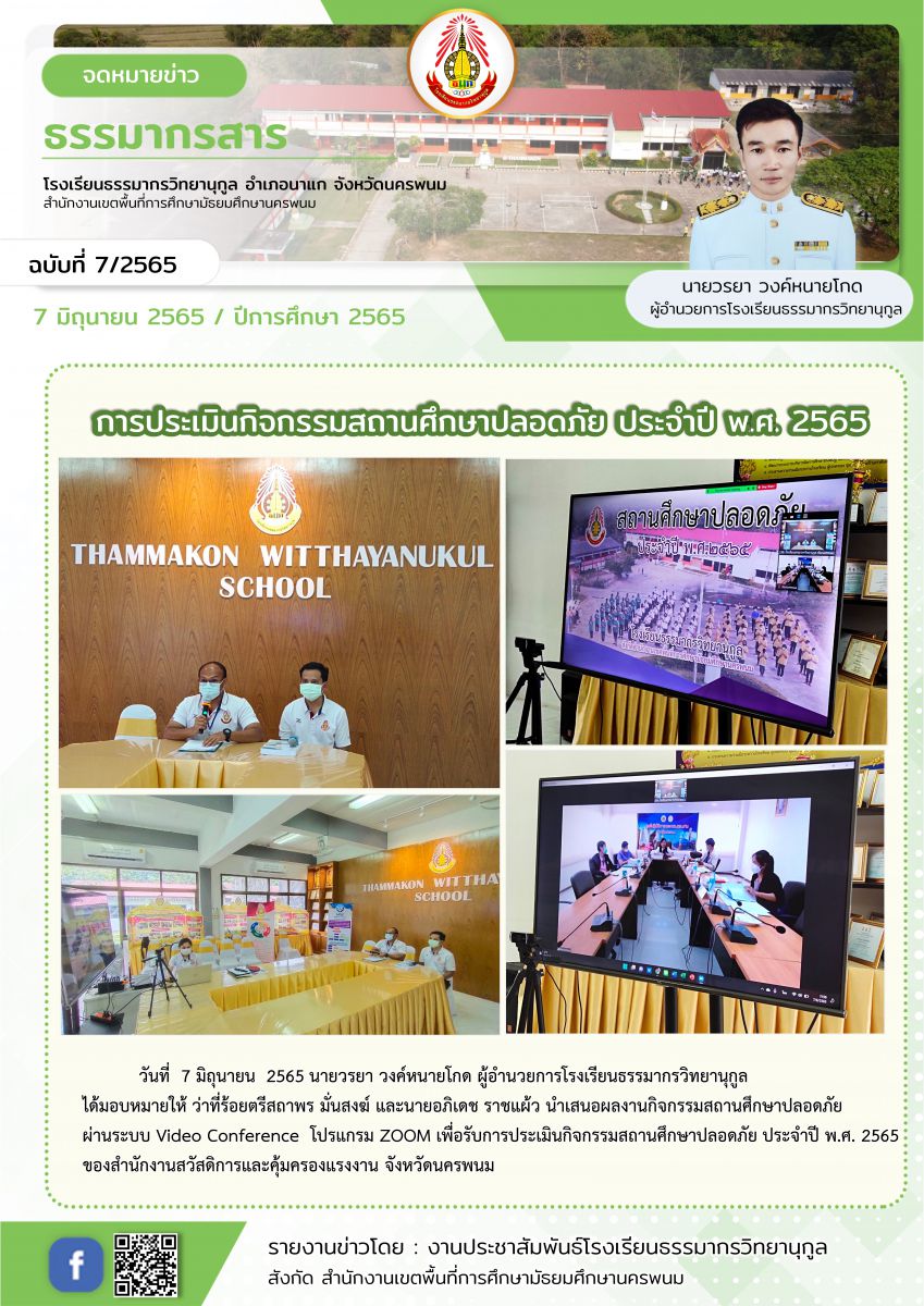 การประเมินกิจกรรมสถานศึกษาปลอดภัย ประจำปี พ.ศ. 2565