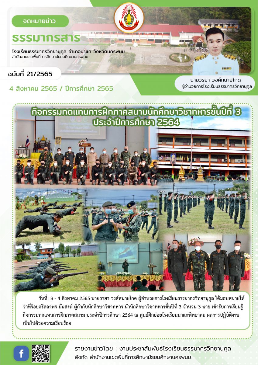 กิจกรรมทดแทนการฝึกภาคสนามนักศึกษาวิชาทหารชั้นปีที่ 3 ประจำปีการศึกษา 2564