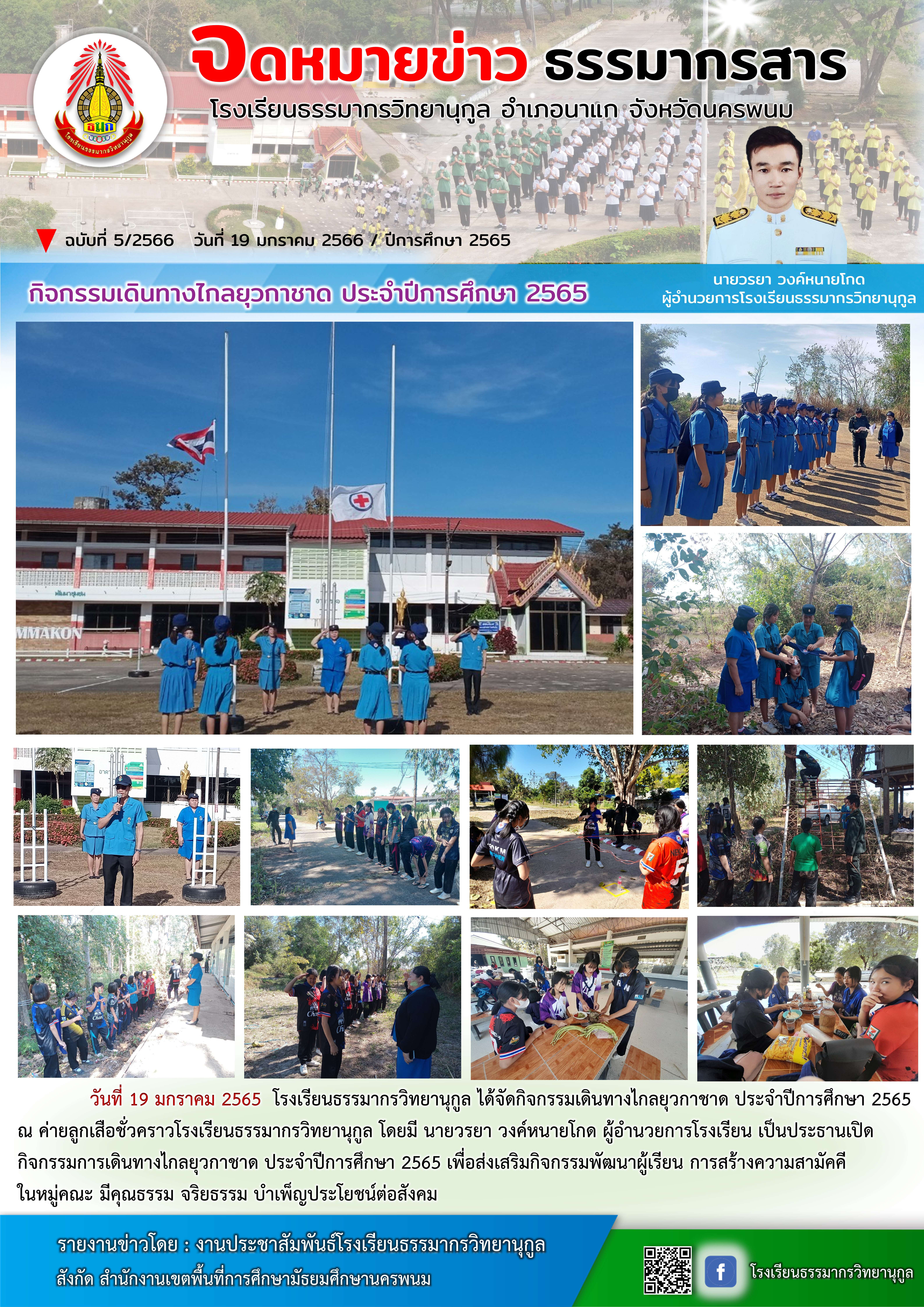 โรงเรียนธรรมากรวิทยานุกูล ได้จัดกิจกรรมเดินทางไกลยุวกาชาด ประจำปีการศึกษา 2565 ณ ค่ายลูกเสือชั่วคราวโรงเรียนธรรมากรวิทยานุกูล