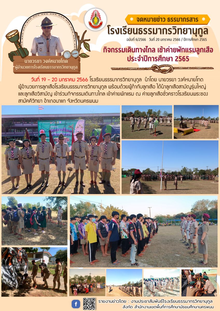 โรงเรียนธรรมากรวิทยานุกูลนำลูกเสือสามัญรุ่นใหญ่ และลูกเสือวิสามัญ เข้าร่วมกิจกรรมเดินทางไกล เข้าค่ายพักแรม ณ ค่ายลูกเสือชั่วคราวโรงเรียนพระซองสามัคคีวิทยา อำเภอนาแก จังหวัดนครพนม